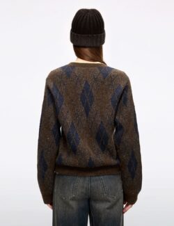 This knit sweater features a fitted. cropped silhouette with a crew neck. combining retro contrast-colored argyle patterns with modern tailoring for a timeless. classic look. Carefully crafted from merino wool. it offers a soft. plush feel. comfortable wear. and a rich. naturally elegant color. Argyle Pattern Crew Neck Design Ribbed Cuffs and Hem Sizing…