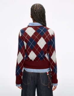 This knit sweater features a relaxed cropped fit with a Polo collar. accented with retro contrast-colored argyle patterns reminiscent of a shawl. creating a naturally layered look. Carefully crafted from merino wool. it feels soft and plush. offering comfortable wear and a rich. naturally elegant color. Polo Collar Design Argyle Pattern Merino Wool Fabric …