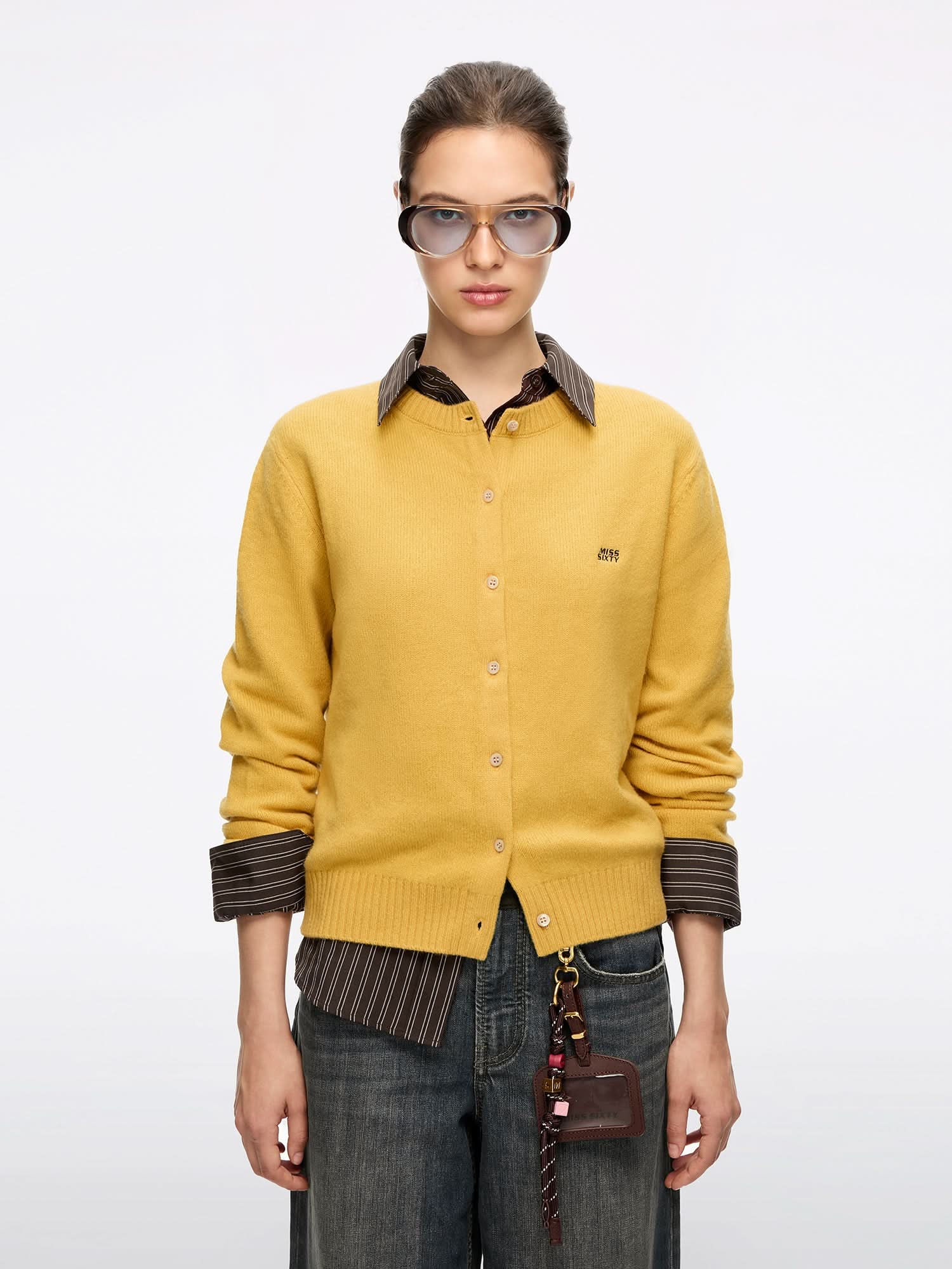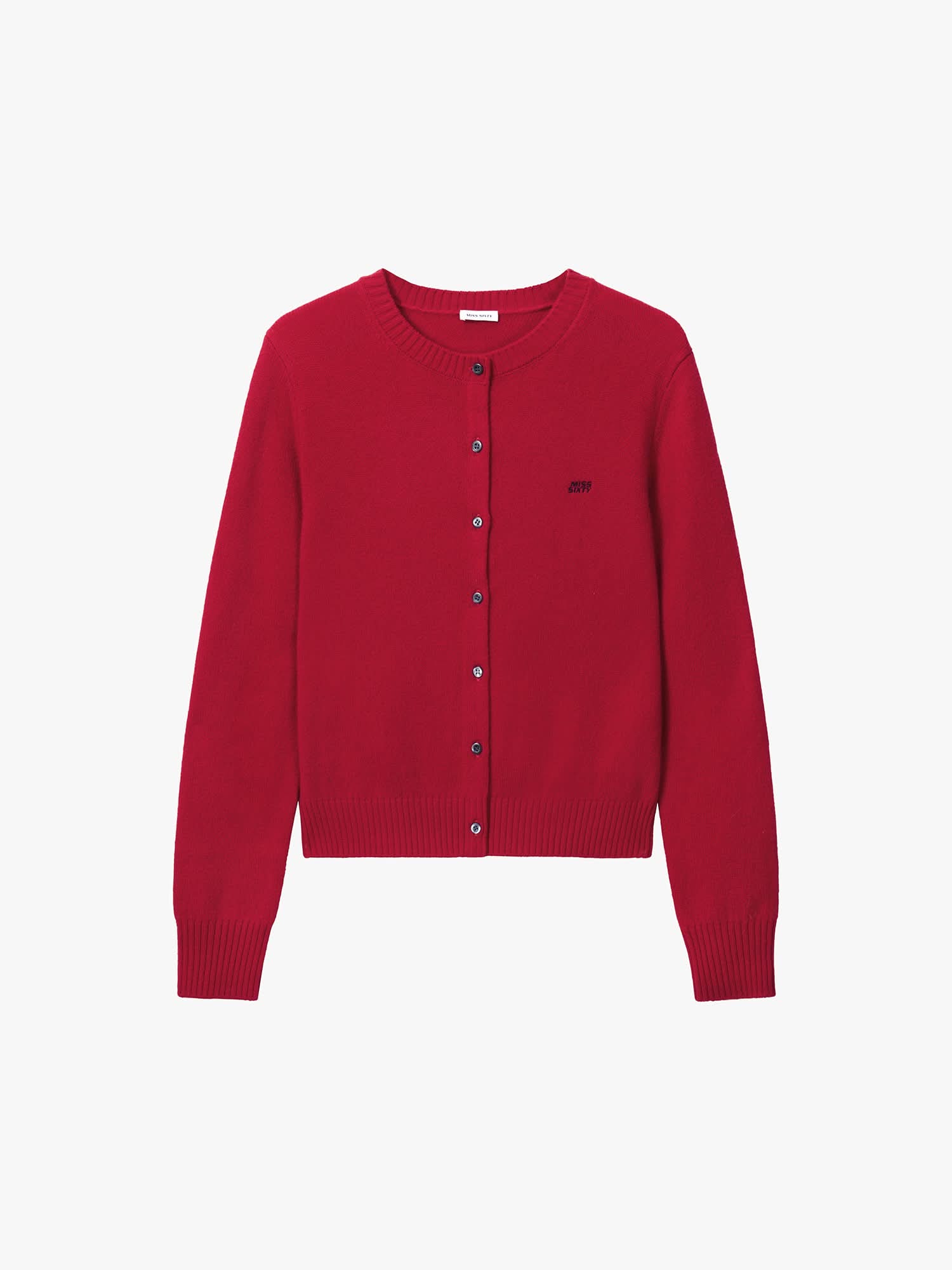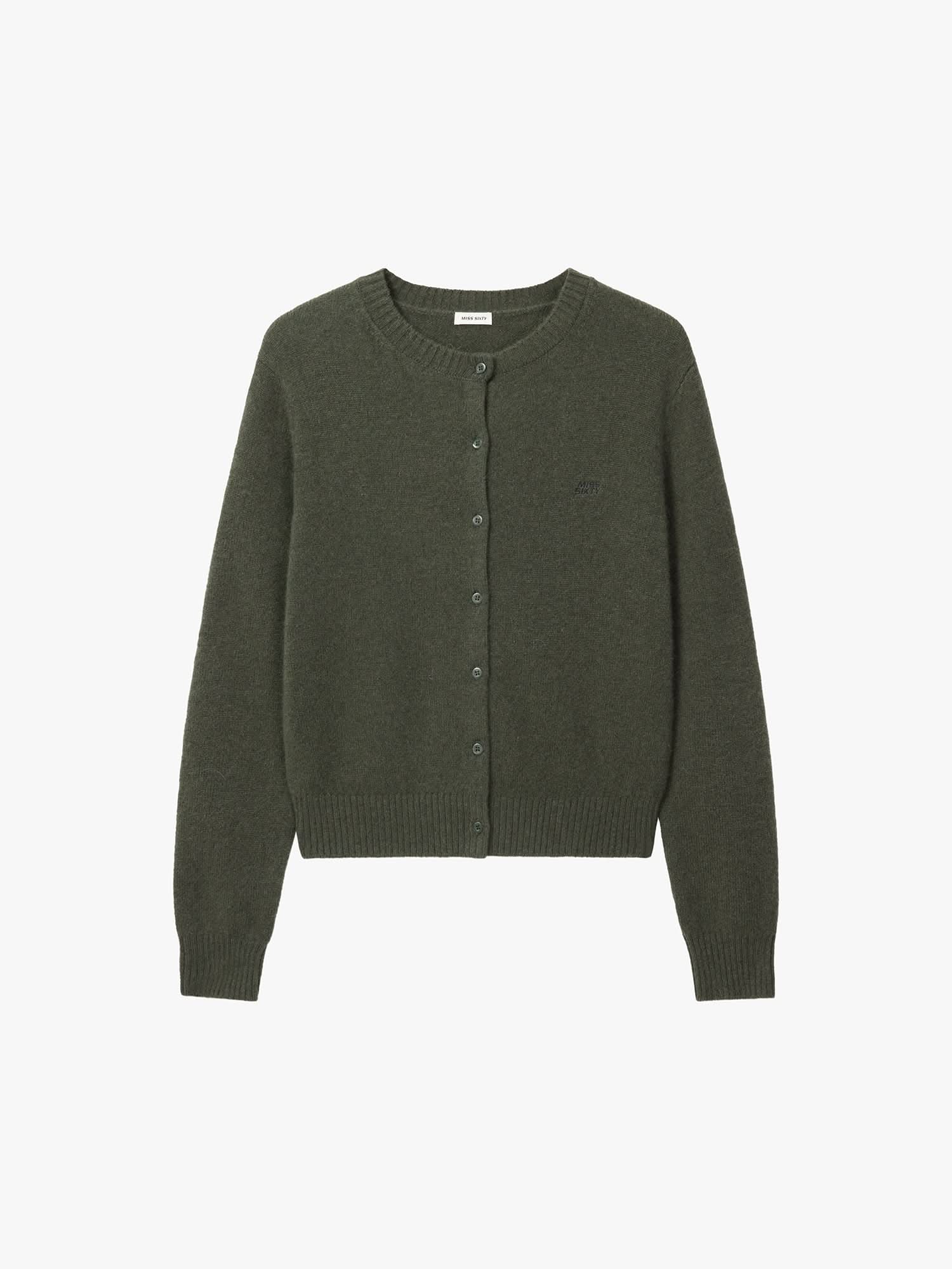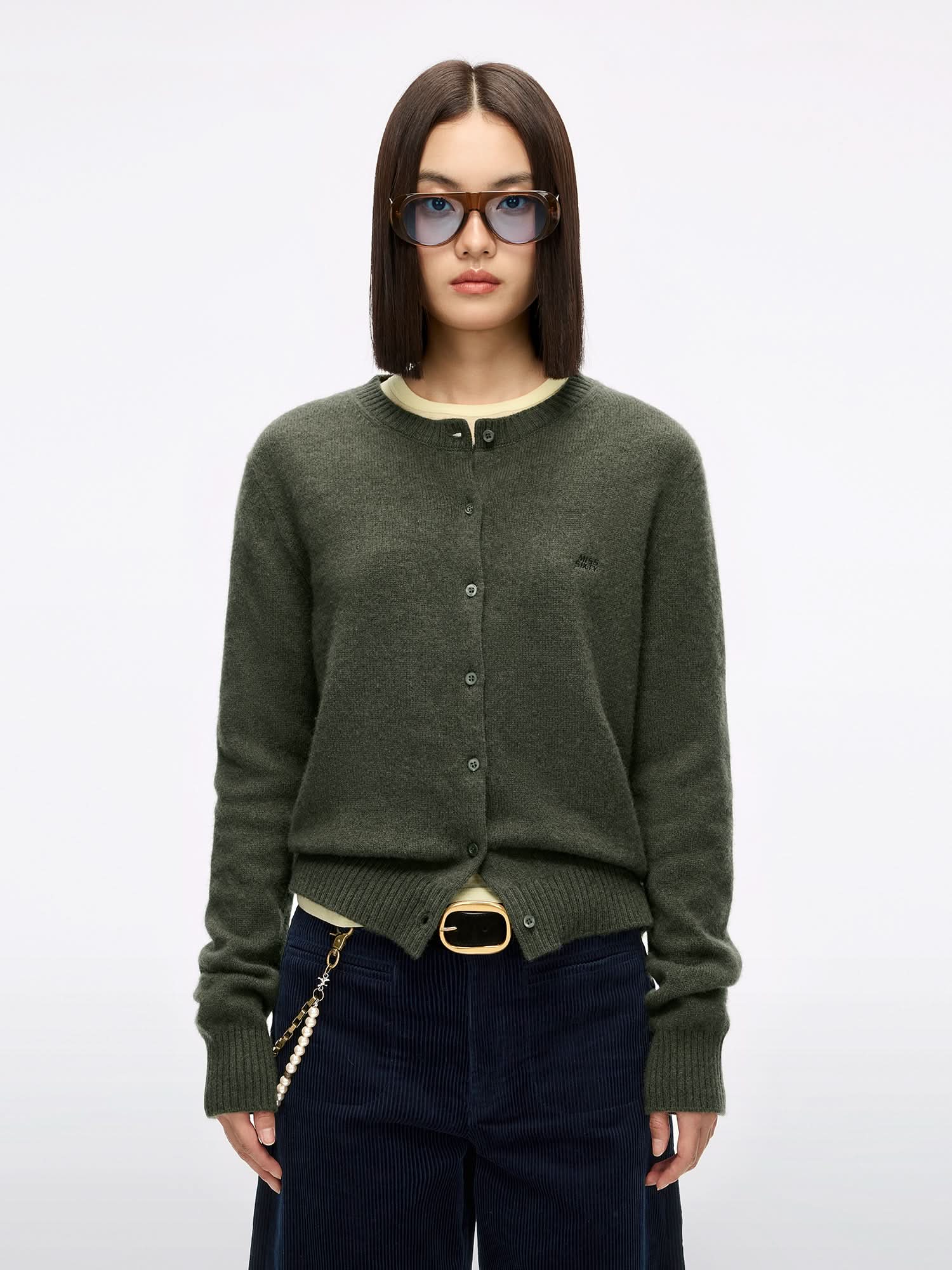 This knit cardigan features a fitted silhouette with a classic crew neck. accented by a contrast-color embroidered logo on the front placket to break the monotony of a single tone. Crafted from high-quality wool. the lightweight. soft yarn provides both comfort and a subtle sheen. making it warm and cozy to wear.