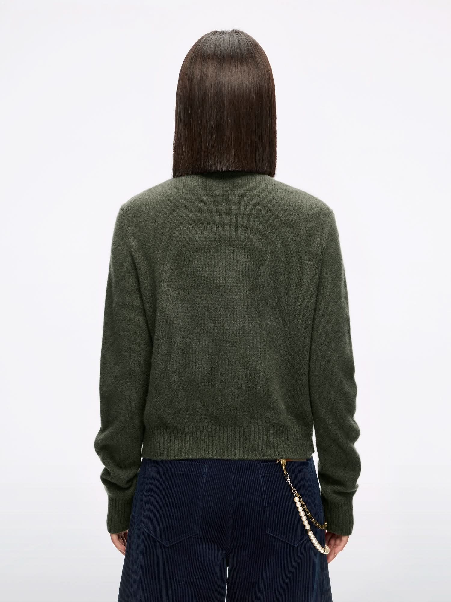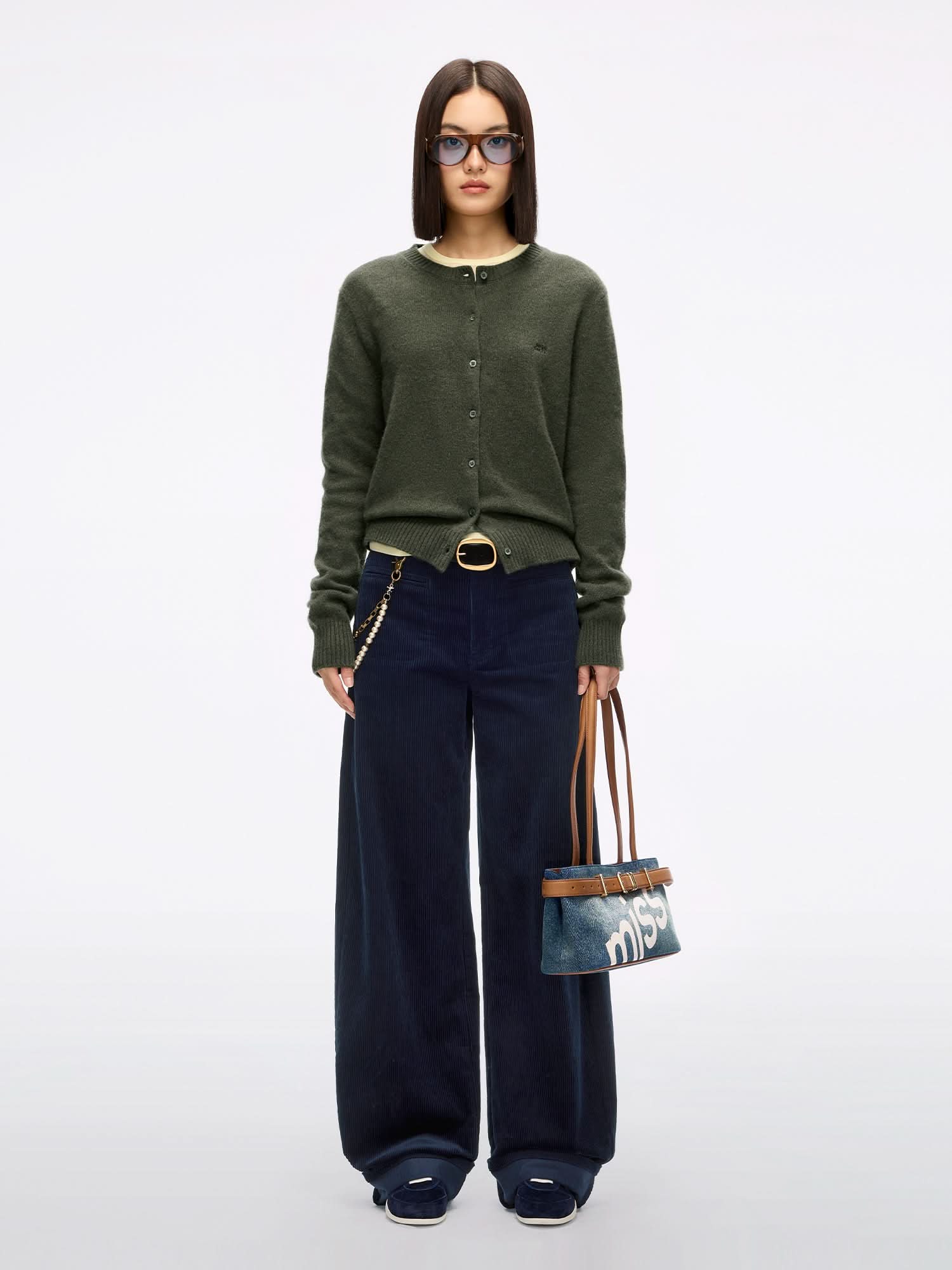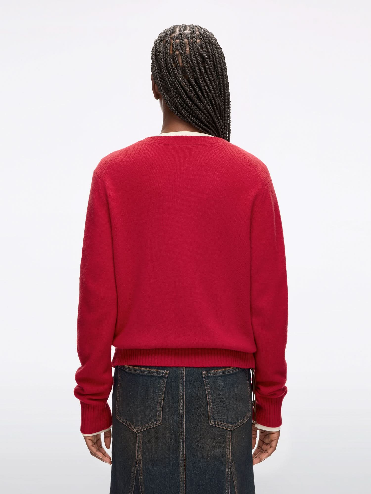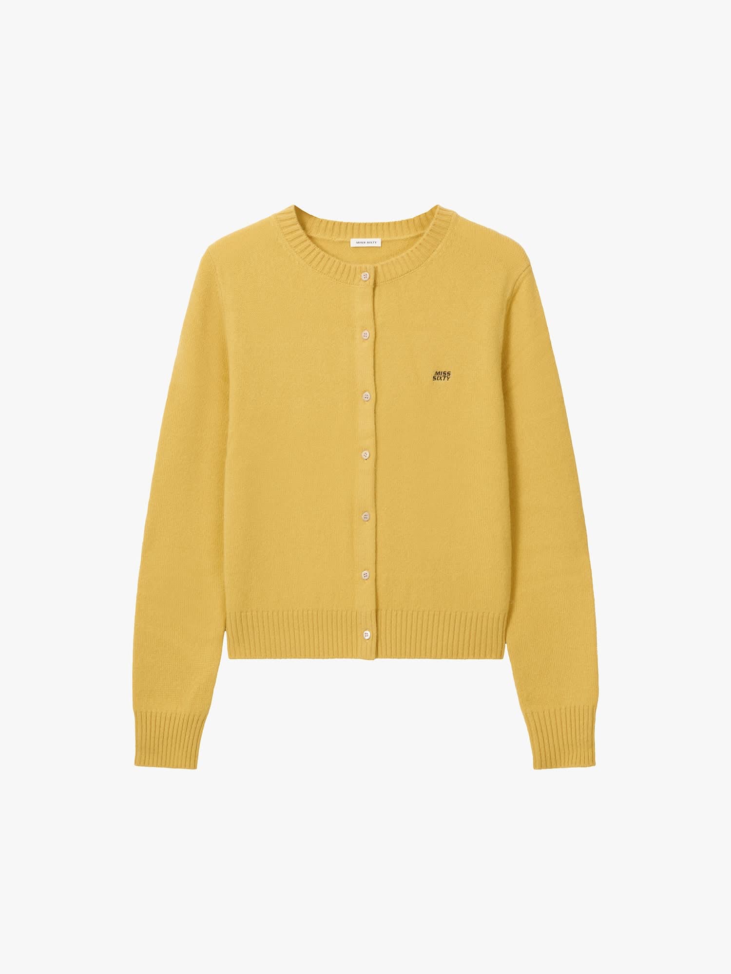 This knit cardigan features a fitted silhouette with a classic crew neck. accented by a contrast-color embroidered logo on the front placket to break the monotony of a single tone. Crafted from high-quality wool. the lightweight. soft yarn provides both comfort and a subtle sheen. making it warm and cozy to wear.